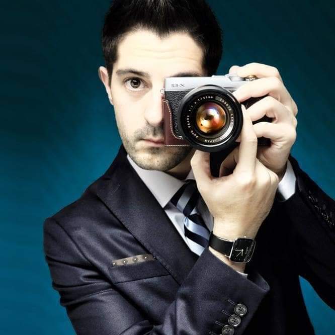 סימון ה ONE-EYE הידוע של אחוות הסתרים עם מצלמת VINTAGE וחליפה מחוייטת על רקע ירוק של אולפן.